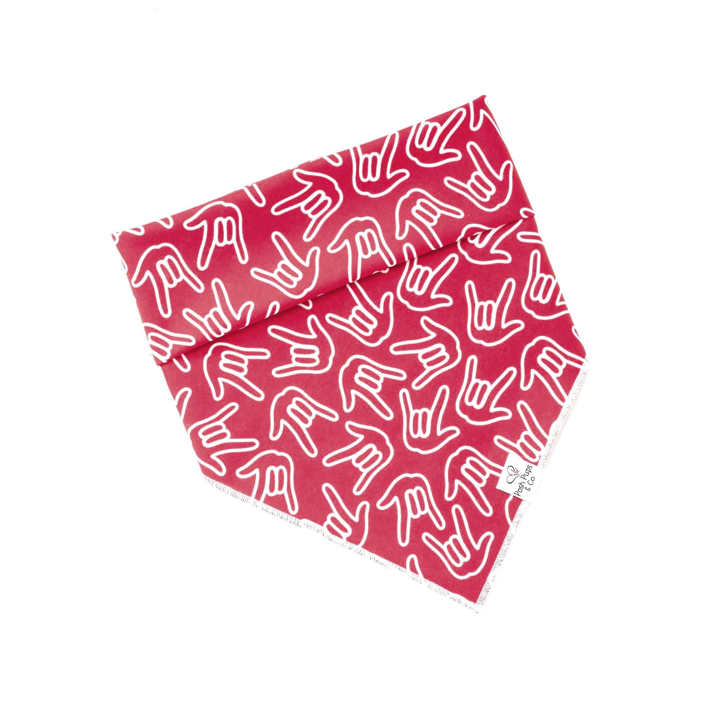 ASL ILY on Red Dog Bandana, I love you Dog Bandana